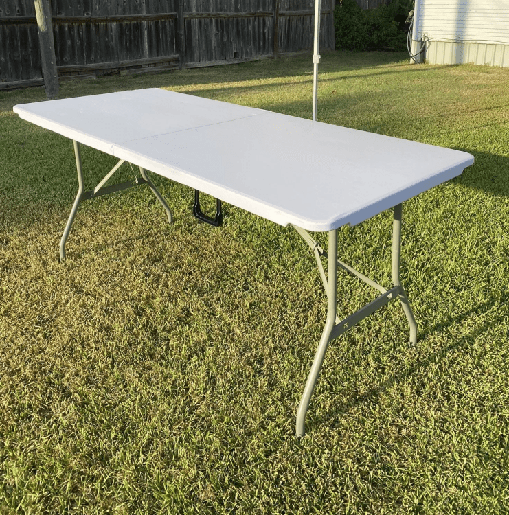 Our 6-foot white folding tables are perfect for party rentals, weddings, birthdays, and corporate events. Each table seats 6–8 guests and features a durable top with a sturdy metal frame. Easy to set up, fold, and transport—great for indoor and outdoor event setups.